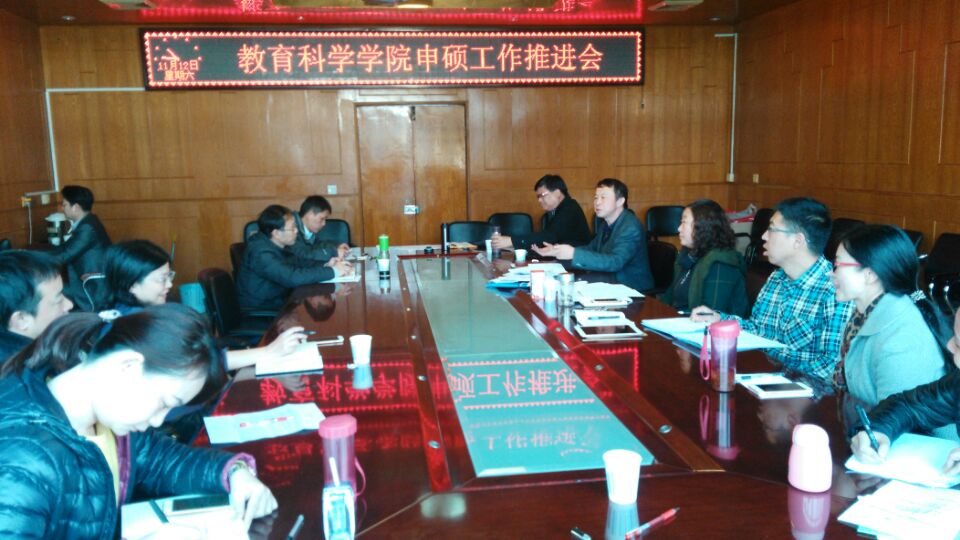 为了切实推进我院教育专业硕士申报工作,11月11日和12日,教科院利用星期五晚上和星期六时间,组织申硕工作小组成员加班加点,研讨申硕工作要领,分项研读申硕文本资料,集中智慧,集思广益、群策群力攻克申硕难关。参会人员为学院领导班子、专业负责人和教授、博士教师组成的申硕工作组。