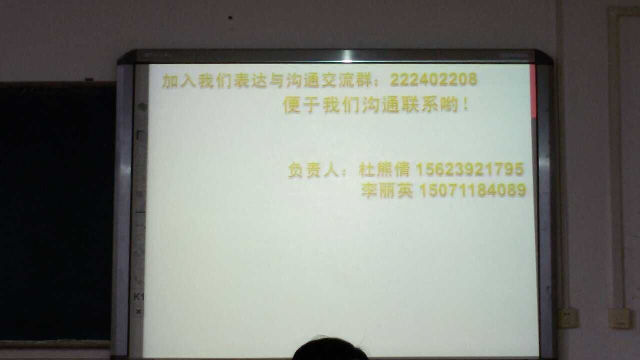 本网讯【通讯员 杜熊倩、李丽英】5月8日中午12:30,素质修炼活动朗诵与即席演讲项目组见面会在五号教学楼5205教室举行,项目负责人杜熊倩和李丽英主持了见面活动。