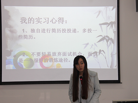 同时,11级实习生代表也对学校制定实习政策提出了一些改进的建议,希望能压缩大四课程,尽早安排实习,学校能更多的帮助学生联系实习单位等等。结合同学们的实习建议,我院将鼓励学生更积极主动对待实习,把实习作为教育教学的重要环节,通过实习充分融汇所学书本知识,努力做到知行合一。