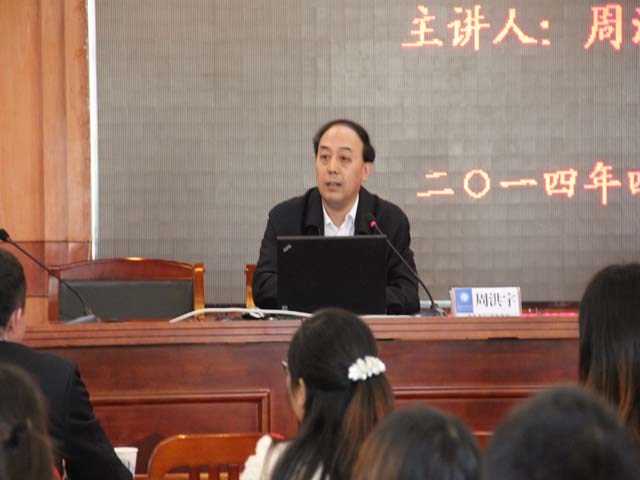 本网讯(记者周彦)4月17日下午,全国人大代表、湖北省人大常委会副主任、华中师范大学教育学院二级教授、长江教育研究院院长周洪宇莅临我校,为我校教育科学学院的学生讲解第十二届全国人民代表大会有关教育的热点动向。校长胡仲军主持了此次会议。