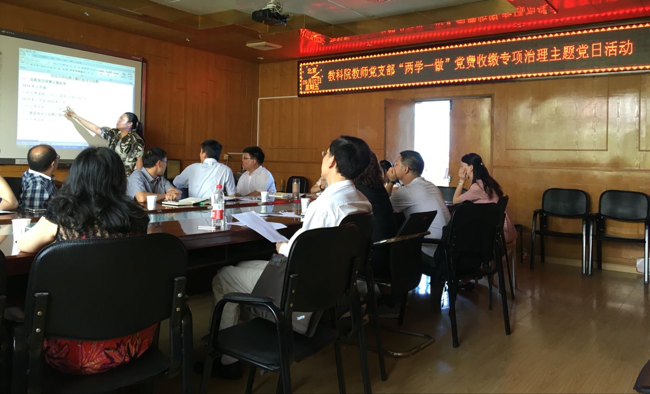 本网讯(通讯员 陈荣,吴贤华)为有效开展学期初党员组织生活,学习、贯彻、落实“两学一做”。 9月2日下午,教育科学学院教师党支部在院系会议室开展“开学第一课”主题党日活动。会议由教师支部书记吴贤华主持。