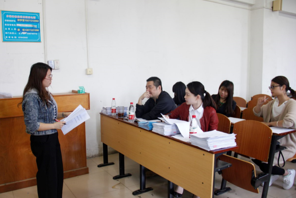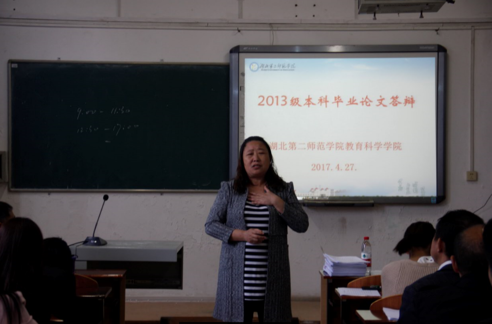 (通讯员 王梅)又是一年毕业季,毕业生们即将交上他们在二师里的最后一份答卷,而后就要各奔东西。2017年4月27日上午9点,教科院全体老师在整个5号楼进行13届的学生论文答辩活动。活动前期老师们在5207教室召开了一次短暂的会议,由陈光春老师担任此次会议的主持人,在简单的介绍了大学生论文答辩的注意事项后,张红梅院长代表发言:“这次毕业生论文答辩,我们要严格要求,学生论文没有经过四次指导不能参加这次答辩,这是对学生负责……”接下来又强调了在学生答辩过程中答辩老师应该特别注意的几点要求。在张院长的鼓动下,老师们纷纷走进各自的教室,送上毕业生们在校的最后一些指导。