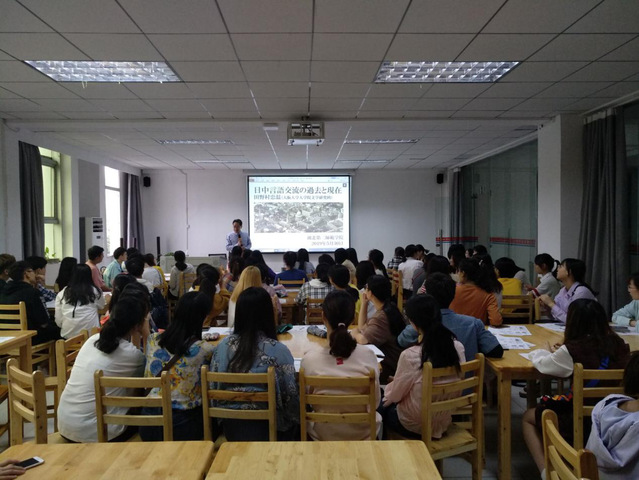 本网讯(通讯员 高玉)5月30日下午,日本著名语言学、日语语言学专家、大阪大学文学研究生院田野村忠温教授应邀到我校讲学。讲座以《近代中日语义交流研究与语言资料档案》为主题,国际交流合作处负责人,外国语学院教师及学生代表80余人到场聆听。