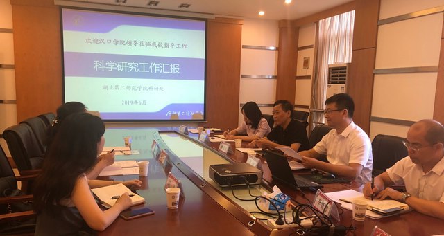 本网讯(通讯员马晓萌)6月26日上午,汉口学院科研处处长张汛等一行3人来我校交流调研,在行政楼三号会议室召开了科研管理交流会,我校党委副书记柯美录出席。