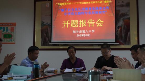 近日,“基于自主生长式教师专业发展理论的中学语文教师专业发展研究”课题开题报告会在韶关市第八中学召开。来自韶关市教育科学研究院、韶关市中语会的专家及课题组成员共20多人参加了此次会议。