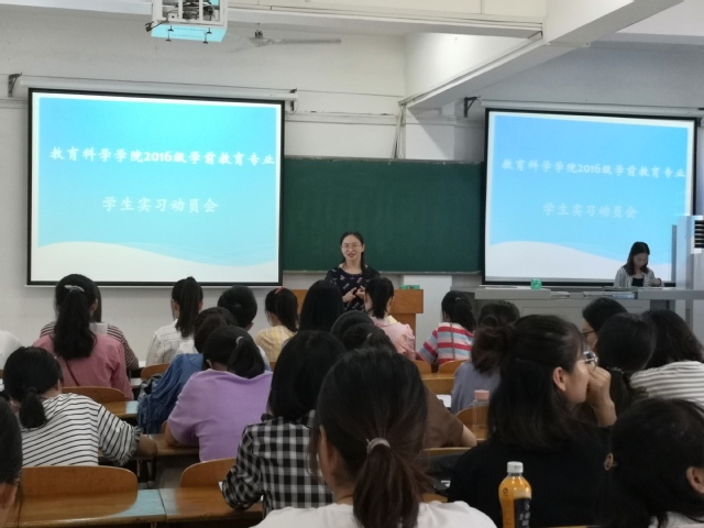 (通讯员 李清宇)为做好学生教育实习工作安排,确保学生在实习过程中学有所得,得其所需,9月19日上午11时,教育科学学院(以下简称“教科院)2016级学前教育专业在五号教学楼5308教室召开实习动员大会。教育科学学院副院长郭三玲、学前教育系主任陈荣、2016级学前教育专业辅导员龚敏及全体同学参加大会。2017级学前教育专业李清宇主持会议。