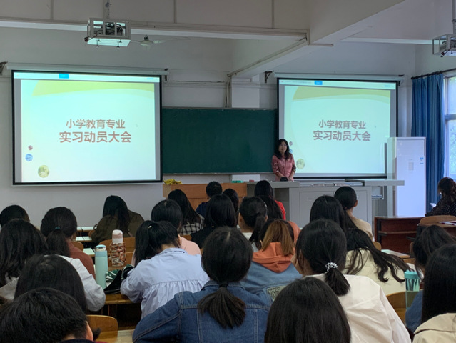 (通讯员 张涵语 胡頔)2019年10月21日下午3时25分,教育科学学院(以下简称“教科院”)2016级小学教育专业实习动员大会在5308教室顺利举行。教科院党总书记乐三明、副院长郭三玲、辅导员龚敏、系主任余娟、专业负责人张炜和小教专业范丹红教授、潘海燕教授、李菁博士以及全体同学参加大会。由系主任余娟主持此次动员会。