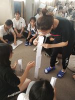 此次团辅活动主要以游戏形式展开,包括“纸片堆积PK小游戏”和“妙手解开千千结”两个环节。活动伊始,在赵千禧的带领下,发放纸张、讲解游戏规则、体验游戏等环节有条不紊地进行。