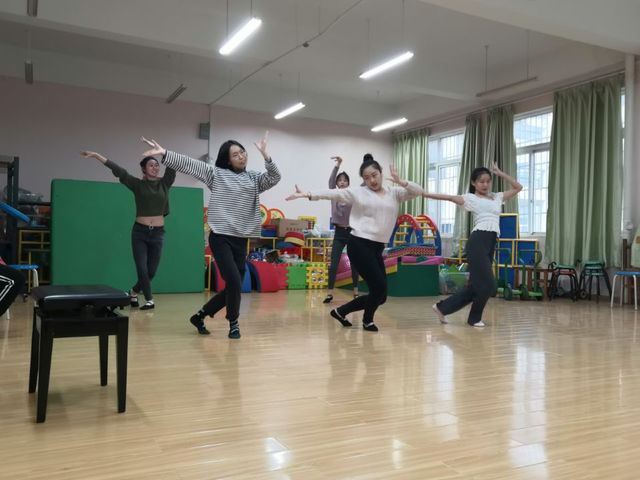(图为2018级学前教育1班参赛选手正在进行舞蹈展示)