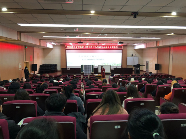 (通讯员 解心怡)12月3日下午2:00,受教育科学学院(以下简称“教科院”)邀请,湖北省实验幼儿园教师上门送教,在图书馆一号学术报告厅为学前教育专业学生举行了一场精彩的示范教学,学前教育专业200余名师生观摩了名师教学活动。
