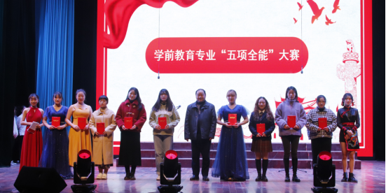 活动中,主持人宣布了学前教育专业“五项全能”大赛获奖名单并由许邦官为获奖者颁奖。随后,许邦官在讲话中表达了对学前教育专业此次汇报表演的称赞并赞扬学生积极向上、争第一争优秀的精神。他呼吁学生要把这种精神践行到实际行动之中以成就更美好的自己。与此同时,他表达出对即将到来的元旦的美好期望并祝福在场观众新年快乐。