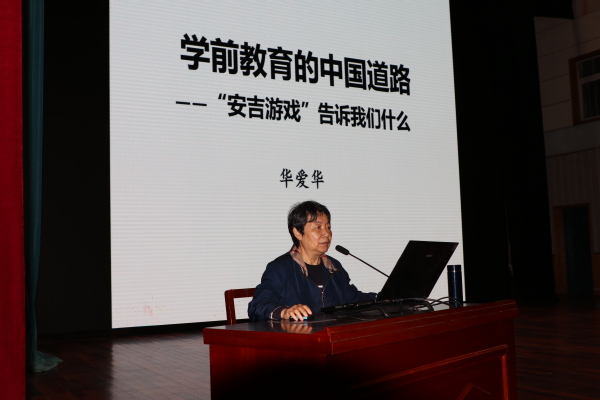 华爱华作《学前教育的中国道路——安吉游戏的实践探索》专题讲座。她从中国文化传统中的教学本义的角度,谈到了中国教育的文化自信,并结合当下幼教实践中的问题,总结出安吉游戏课程和教学的定位,从而唤醒幼教工作者树立正确儿童观,放手游戏,发现儿童,尊重儿童,真正为儿童的健康成长着想。