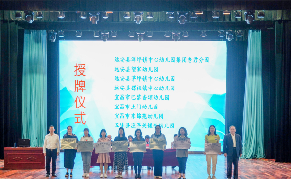 9位园长、教研员代表分别围绕幼儿园游戏探索主题,在园长论坛环节进行专题发言。与会领导为28所安吉游戏实践园授牌。