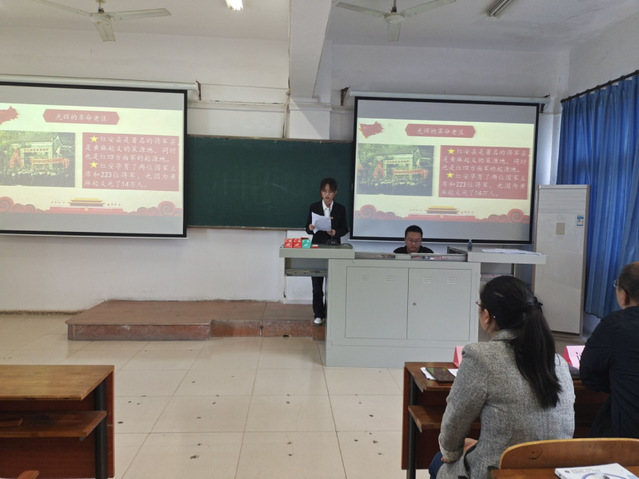 活动伊始,主持人对此次评选活动的参赛情况及作品形式进行简单介绍。接着,各参赛者依次上台演讲,分享自己在追寻家乡红色足迹过程中的感悟、向大家介绍家乡的英雄人物及革命事迹,评委进行打分。师生共同追忆历史回音,感悟初心使命,接受革命传统教育。
