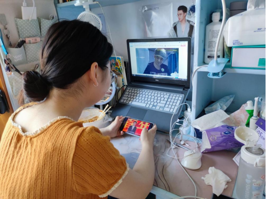 (图为学生正在观看视频)