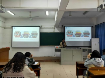 紧接着,四叶草青年志愿服务队队长潘亚玲从初心、爱心与责任心三方面展开分享。她强调:“第一,不忘初心。参加三下乡不能只为了赚取学分,要真正的有所收获。第二,心怀爱心。三下乡支教活动主要面对留守儿童,我们作为师范生要用专业技能让他们获得知识,也要用爱心让他们感受到温暖与关爱。第三,要有责任心。在三下乡社会实践团队中,我们作为团队的一份子,要为团队的建设献出自己的一份力量。”最后,潘亚玲播放一段团队实践视频。视频中,队员们努力克服混龄制的班级教学的困难,并听取了当地学生与家长的意见与建议,改进教学的方式并创造更好的课堂。参会学生通过观看视频更加深入地感受到志愿者们与当地学生交流时的真情实感。钟意志愿服务队何芸着重分享团队的调研流程以增加学生对三下乡调研方面的了解。长夏暖情志愿服务队杨缘缘则从组建新团队、活动内容、宣传工作三个方面展开宣讲。