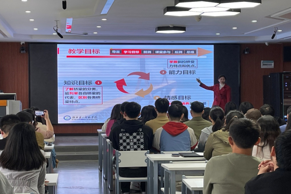 优秀教师教学示范观摩课主讲老师是建筑与材料工程学院首届湖北省高校教师教学创新大赛获得者余琳琳老师。余老师讲授的课程是《桥梁工程概论-斜拉桥》,她运用多媒体课件图文并茂,辅助动画演示,形象直观的多媒体教学,充分调动了学生的积极性和主动性,激发了学生的学习兴趣。观摩课师生互动良好,课堂气氛活跃,授课极富感染力,教学效果良好,与会师生们表示受益匪浅。