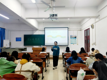 (图为学友讲师团负责人赵洁向学生介绍学友讲师团)