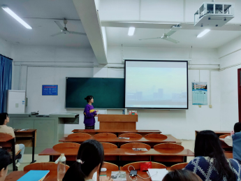 活动中,杨缘缘以《旅游记》为主题介绍了武汉的各类景点,包含娱乐、文化、风景等类型。她首先以湖北第二师范学院为基点,向学生展示校内盛开的樱花美景与幽静的三鉴池等自然人文景观,希望学生能够有一双发现美的眼睛,感受身边的美景。随后,她为大家推荐了校园周边美味的小吃店,并由此提到分布在武汉各处的美味,学生们纷纷表示向往。在讲解各处旅游景点的过程中,提到文化景点如黄鹤楼,杨缘缘会为学生讲解它的历史;提到娱乐景点如欢乐谷,也会为他们提供游玩建议。在活动进行过程中,她与学生互动频繁,使活动变得生动有趣,进一步加深了学生对武汉各景点的印象。
