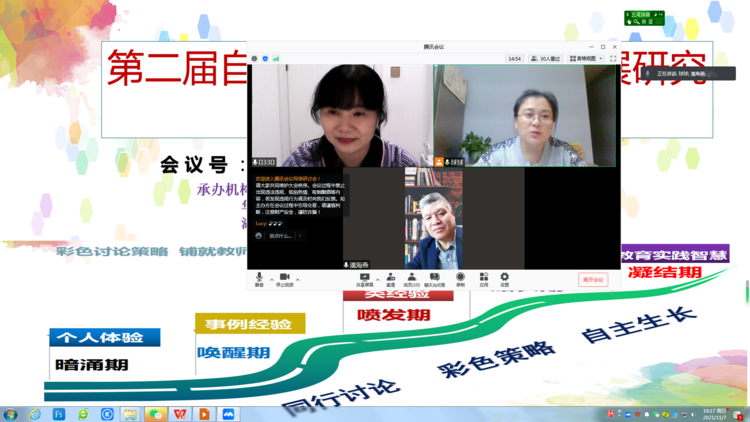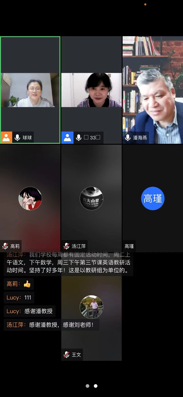 会议尾部,潘海燕教授对此次会议进行总结,他认为,刘艳婷老师作为“教研组长”,是最实际的教师“专业共同体”负责人,她在教研组的一些很有创意的做法,很好地促进了教师“类经验”的生存,这已表明她是一位很专业的共同体建设专家,我们的实验学校很需要这样的专家与实干家。潘教授认为今天的活动很成功,对参会所有人员表示了衷心感谢,并请大家静候第三届自主生长式教师专业发展研究成果视频分享会的顺利召开。