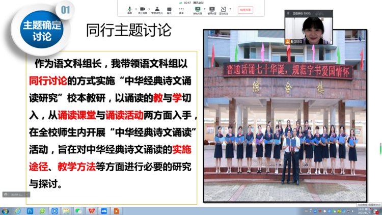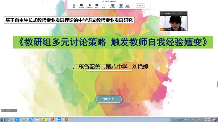 (通讯员 李澳)2021年11月7日晚19:30--21:00,教科院未来智慧型教师自主生长工作坊联合华南师范大学教科院自主生长理论研究生社团,承办了“第二届自主生长式教师专业发展研究成果视频分享会”,分享了广东省韶关市第八中学语文科组长刘艳婷老师的最新研究成果——教研组多元讨论策略 ,触发教师自我经验嬗变。