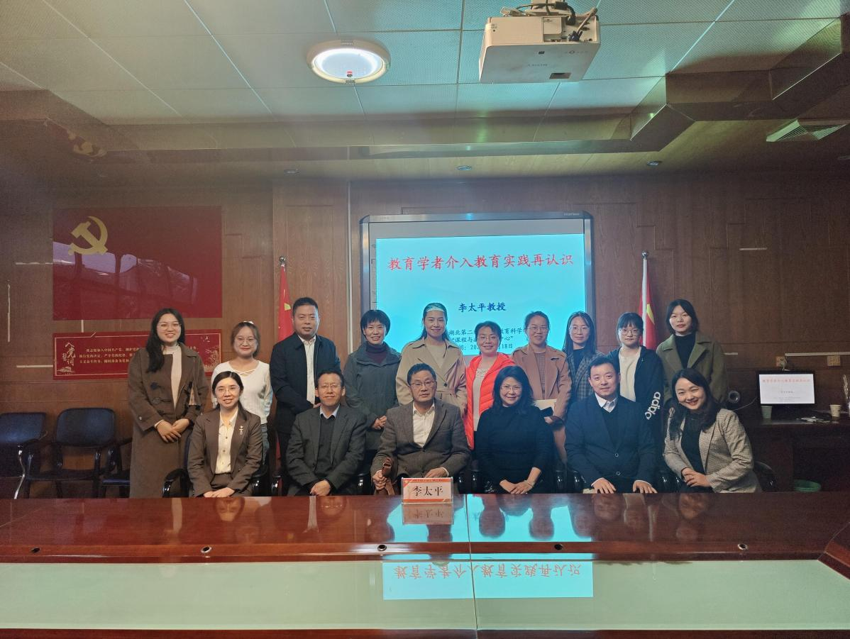 会议伊始,余娟介绍与会人员并对所有参会领导教师表示热烈欢迎。随后,李太平教授从“中介型介入及其局限”、“创生型介入的内涵及其合理性分析”以及“创生型介入的推进策略”三方面深入讲解,剖析教育学者介入教育实践的再认识原理。