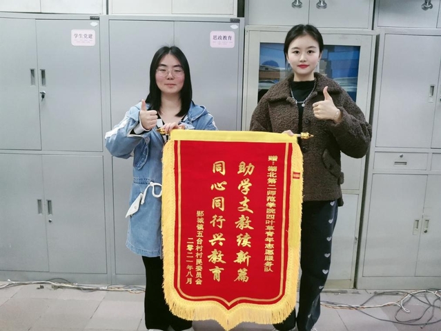 (通讯员 樊事宇)12月6日,湖北第二师范学院四叶草青年志愿服务队收到来自荆州市荆州区郢城镇五台村村民委员会赠送的锦旗,锦旗上写着“助学支教续新篇,同心同行兴教育”等话语,展现了五台村村民对四叶草青年志愿服务队社会实践活动的肯定。