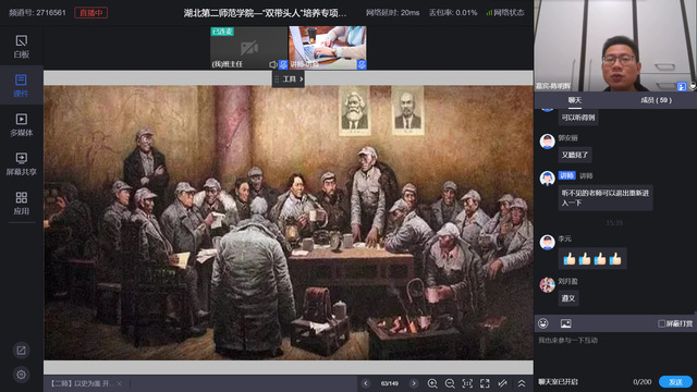 本网讯(通讯员 张奔月)12月11日下午,湖北省2021年“中小学幼儿园教师素质提升工程”——“双带头人”研修培训项目于线上继续开展。华中农业大学马克思主义学院副教授、历史学博士陈明辉开展主题为《以史为鉴 开创未来:解码中国共产党百年奋斗的成功密码》的专题辅导。培训班全体学员听取讲座。