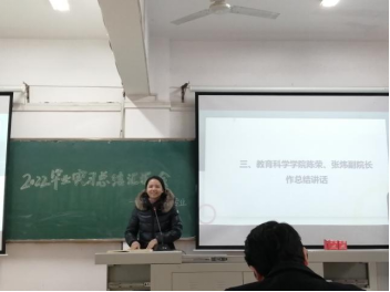 (通讯员 夏维艳 赵洁)在阳光明媚的冬日,教育科学学院(以下“教科院”)于五号教学楼5308教室举办教科院小学教育专业毕业实习总结大会。小学教育专业全体教师,18级小学教育1、2班以及20级小学教育3、4班全体毕业生参与会议。小学教育系主任余娟和18级小学教育专业毕业生高雪梅主持会议。