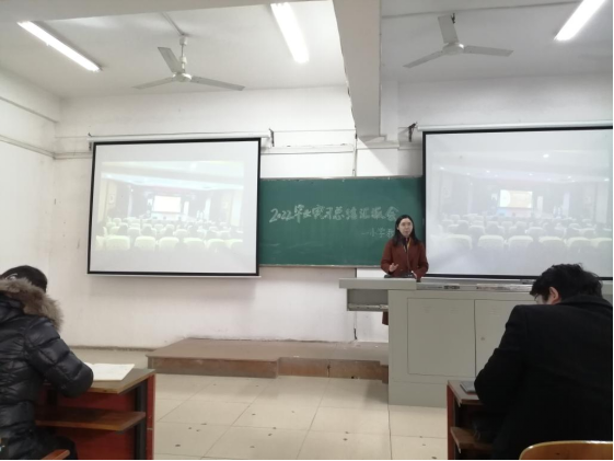 最后由光谷第十二小学实习生代表贾云霞从四个方面进行汇报,第一是实习概况,她介绍了光谷十二小学学校校训,教育理论与模式和实习生年级分布;第二是教学工作,他们在学校会进行听课、教研、上课、批改作业和辅导学生;第三是班主任工作,他们跟着班主任会进行晨、午检、眼保健操、午餐、教室卫生、放学路队等工作;第四是实习收获。