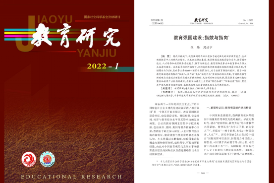 (通讯员 石晶、刘菲)2022年第1期《教育研究》上刊发了我校教育科学学院张炜教授为第一作者、湖北第二师范学院为第一署名单位的学术论文“教育强国建设:指数与指向”(14页,约1.8万字)。