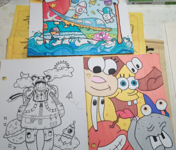 (图为黄颂与金殿中正在看学生简笔画作品)