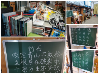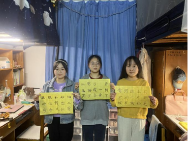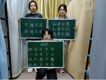 走访过程中,龚敏为领导老师们介绍学生宿舍的各种特色,如钢笔字、粉笔字、毛笔字、简笔画等等。黄颂称赞了学生们所创作的“三字一画”等相关优秀作品,他向学生们强调,“三字一画”是师范生的基本技能,要牢牢掌握,打好基础。随后,各个宿舍所展示的照片墙,画板,玩偶以及盆栽等均体现了宿舍里温馨的氛围。不少学生也为自己的“小家”取了名字,有“书香小屋”、“书法之家”、“游戏乐园”,让学生们在学习之余也充满生活情趣。