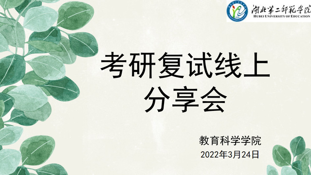 (通讯员 洪怡杭)为了鼓舞考研学生士气,缓解学生紧张情绪,3月24日20:00,教育科学学院(以下简称“教科院”)就业服务中心于腾讯会议召开考研复试分享会。教科院学工办主任代黎明、就业服务中心指导老师龚敏、就业服务中心部分学生干部及18级部分学生参加会议。19级小学教育2班袁艺格主持会议。