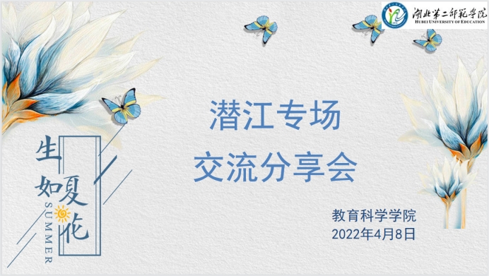 (通讯员 李冰倩)4月8日20:00,教育科学学院(以下简称“教科院”)就业服务中心于腾讯会议召开潜江专场分享交流会。教育科学学院分党委副书记魏豪、学工办主任代黎明、就业服务中心指导老师龚敏、辅导员彭元老师、辅导员唐志强老师、辅导员关畅老师、就业服务中心部分学生干部、2017级优秀毕业生代表及18级部分学生参加会议。21级学前教育1班周妍主持会议。