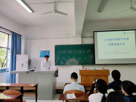 首届心理辅导课大赛省级二等奖获得者张万双做参赛经验介绍,在讲授的同时配上自己参赛时的课件,不仅介绍了赛前参赛者所需地各项准备,还介绍了讲授时地讲授技巧。