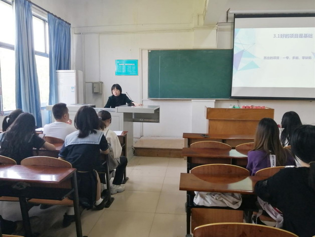 活动伊始,18级小学教育1班姬圆圆分享参赛经验,她不仅向在场学生讲述自己参加两次比赛过程中的一些难忘经历,还从学术潜力、团队协作及综合能力三个方面阐述参加比赛的收获,以此激励在座学生积极参加比赛。紧接着,代黎明解读相关文件,结合姬圆圆的经历讲述参赛对考研复试和后期发展的优势,另外将“互联网+”与“挑战杯”进行对比,让学生对“互联网+”有更多了解,并以我院的“心灵信使”团队为例向学生们表明比赛的成功不是一蹴而就的。同时,代黎明还从参赛有关事宜、如何实现零缺陷以及人才和团队培养向学生们详细讲解,并讲述比赛的含金量和重要性。