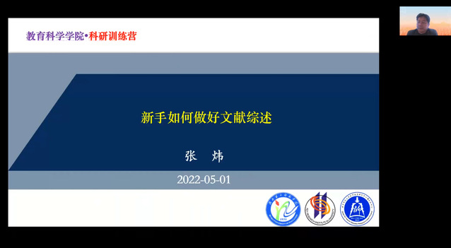 (通讯员 张睿思)为提升科研训练营成员基本学术素养,科研训练营于2022年5月1日9:00召开主题为《如何做好文献综述》的线上学术讲座,我院副院长张炜教授主讲,学生助理张睿思主持讲座。