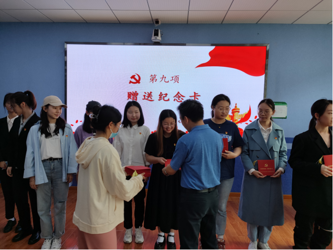 最后,老师们向全体毕业生党员赠送学校精心制作的政治纪念卡,全体人员合影留念。