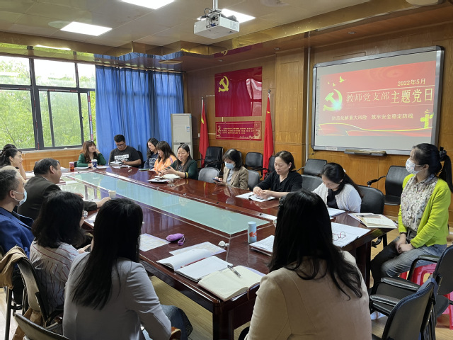 5月19日下午2:30,教育科学学院(下简称“教科院”)教师第一、第二党支部在院会议室开展5月主题党日学习活动,此次活动的主题为“防范化解重大风险,筑牢安全稳定防线”。教科院教师第一党支部宣传委员李菁主持会议,校党委副书记许邦官及教科院教师第一、第二党支部全体党员参加。