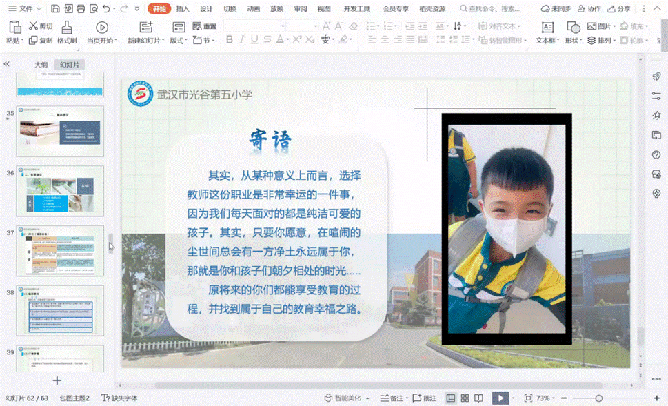 付珍妮主要从班主任的工作、副班主任的工作、中队会、学生值日、教师值日、学生意外伤害、师生沟通以及学校沟通八个方面向学生详细地介绍小学教师的相关工作,并举例说明教师开展相关工作的方法。在班主任工作指南这一部分中,她从品德教育、学习指导、身心健康、班级建设等四个方面详细介绍了班主任的工作内容,让与会人员对班主任的职能有了更加深入的了解,使其在未来的职业生涯中有了更加明确的方向。付珍妮通过播放三则光谷五小的教学成果视频,向学生讲述小学教育工作中的一些注意事项。