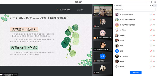 (通讯员 刘佳)为增加小学教育专业相关经验并提高专业素养,6月8日晚6:30,教育科学学院(以下简称“教科院”)开展线上活动《教育即修行》,方黎校长为本次主讲嘉宾,教科院全体小学教育专业学生参与本次活动。
