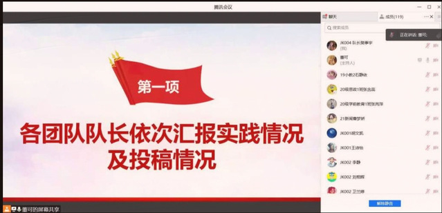 会议伊始,各服务队队长从团队总人数、三下乡地点、支教点数量以及中青网中稿情况进行工作梳理汇报。