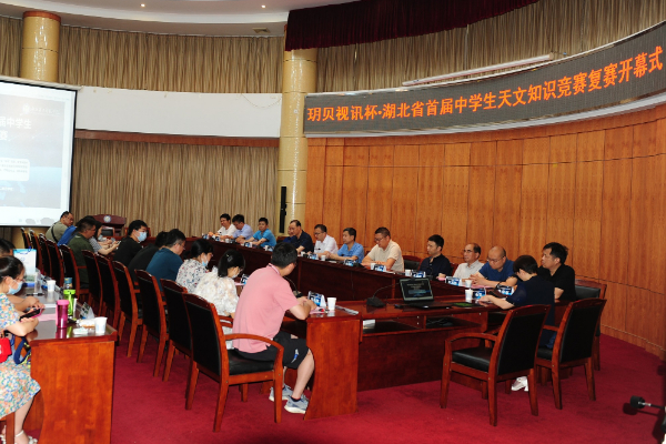 本网讯(通讯员 谈伟伟)7月8日上午,玥贝视讯杯·湖北省首届中学生天文知识竞赛(武汉赛区)在我校成功举办。湖北省天文学会理事长郑小平、秘书长李忠华、副理事长范锡龙,武汉鑫荣成科技有限公司董事长阮光友,我校副校长夏力出席开幕式,物理与机电工程学院副院长李莎主持。