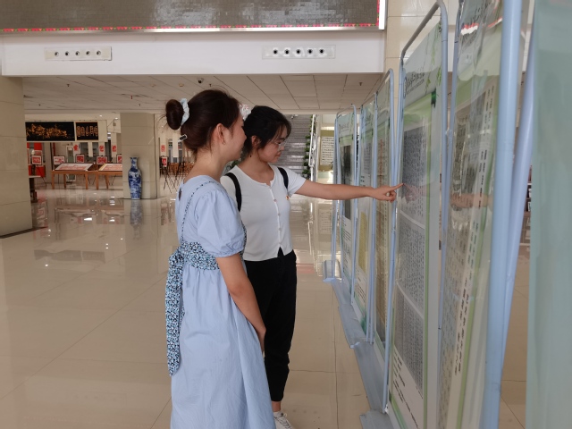 活动伊始,教科院所有学生党员、预备党员以及入党积极分子分批有序地观摩图书馆二楼大厅中的优秀书法展,并深入感受优秀书法作品的书法技巧、领悟作品内容的含义、交流各自的感想。在观展结束后,全体成员分批进行合影留念。