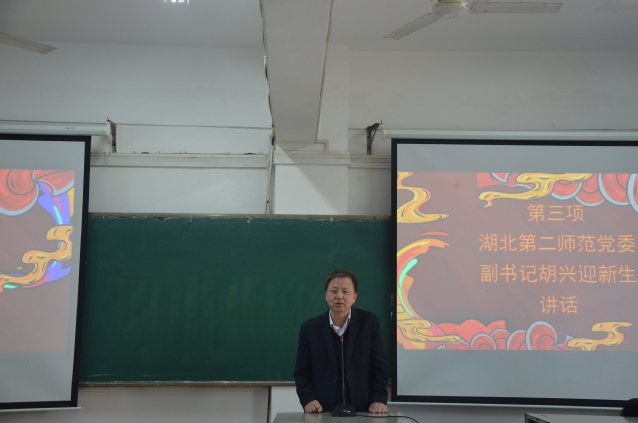 胡兴从学校的发展历史、办学设施与条件、人才培养情况等方面向全体新生做了简要介绍。然后给同学们提出了几点希望和要求:希望同学们要有理想信念和明确的学习目标;希望同学们要遵章守规,做一个谨言慎行的大学生;希望同学们要积极向上,勤奋学习;希望同学们要立大志、明大德、成大才、担大任,做一个向上向善的好青年。
