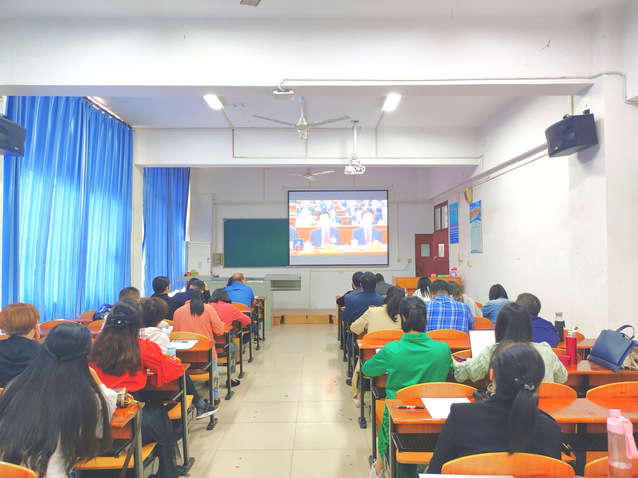 (图为5207教室,教师正在观看党的二十大开幕会)