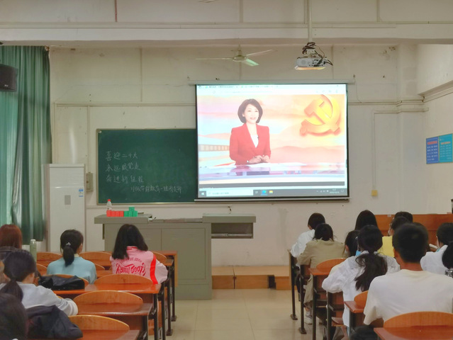 (图为5306教室,学生党员正在观看党的二十大开幕会)
