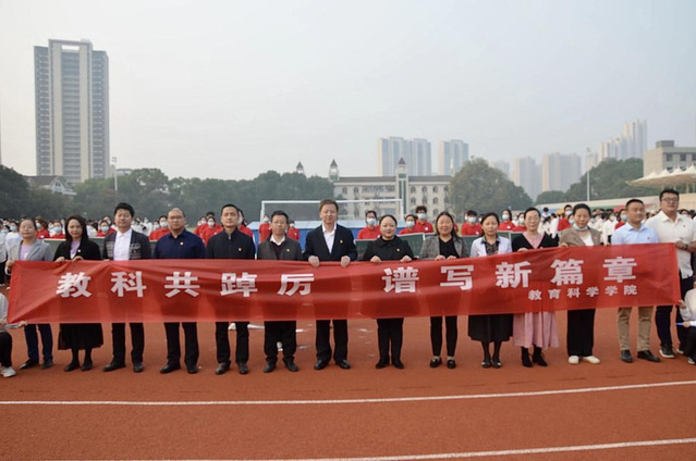 (通讯员 阮一凡)10月17日晨,为庆祝党的二十大胜利召开,进一步加强爱国主义教育,激发广大师生学习党的二十大精神的积极性,教育科学学院(以下简称为“教科院”)在田径场升旗台举行升旗仪式。学校党委副书记胡兴、校党政办公室主任王青、副主任欧阳杰及老师、教科院院长张红梅、分党委书记乐三明、副院长张炜、副院长陈荣、分党委副书记魏豪出席本次活动,教科院全体辅导员、2021级与2022级本科新生参加,21级小学教育4班余忆婷主持。