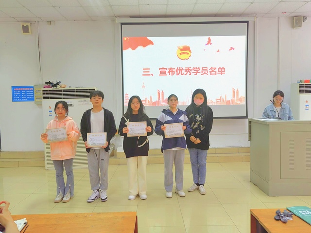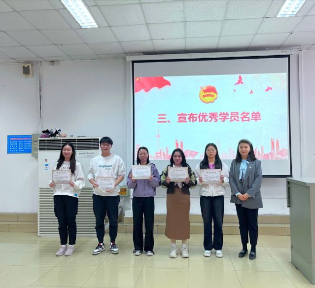 活动伊始,余忆婷介绍了到场的老师。接着,全体起立,奏唱《中国共产主义青年团团歌》。随后,唐志强老师宣读了《关于共青团湖北第二师范学院教育科学学院委员会第六期团校培训班学员结业及表彰的决定》,并公布了赵妍在内的25位优秀学员名单,并由龚敏、杨霞、关畅、贺湘婷、覃琳五位老师为他们颁奖。大会第四项是优秀学员代表赵妍发言,她总结了此期团校的学习收获,感谢老师的教导和组织部同学的付出,表明身为共青团员未来的行动。